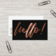 In einem mutigen modern, Handschriftsskript-Schriftart, schuf ich eine grafische Typografie, die überlagert wurde für das Wort "hallo!" und verschönert ihm mit einer glattes kupfernes ombre metallischen Beschaffenheit. Sie füllt fast die Front der Karte und macht einen mutigen Eindruck. Schablonenfelder für weiteren ganzen Text wurden der Rückseite, in der Ihre Details in alle Kappen übertragen werden, GROTESK-Schriftbild hinzugefügt. Die Rückseite ist völlig editable. Und wenn Sie mögen, benutzen möglicherweise Sie auch die besonders anfertigenden Werkzeuge, um die Hintergrundfarbe der Front, von der editable schwarzen Einrichtung dort zu ändern jetzt. Bitte gelassen mir wissen Sie, wenn Sie Anträge haben oder benötigen Sie Hilfe beim Besonders anfertigen. //100 //entworfen durch Melodie Watson für PapierMuserie.