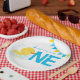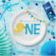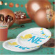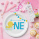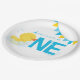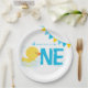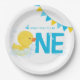 White Watercolor Gummi Duck Oh, was Spaß, ein 1. Geburtstag Papier Teller zu sein. Gelb und Blau