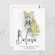 Glauben Sie Script Child Window Weihnachtsfeierzauberei. Eine feierliche magische Illustration eines kleinen Mädchens, das an Heiligabend durch das Fenster guckt, mit einem Weihnachtsbaum und einer Garlandschaft. Glauben Sie, ist in einem eleganten Set handschriftlich Stil und leicht personalisieren Sie Ihren Gruß und Namen.