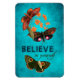 Eine inspirierende und motivierend Botschaft, "Glaube an dich selbst", über einen wunderschönen aquamarinen Hintergrund mit Schmetterlingen und Blume.
