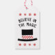 Dieses moderne Geschenketikett hat einen weißen Hintergrund mit einem einfachen Design Snowmans Top Hut in der Mitte mit dem Glauben an die Magie Gruß auf der Spitze umgeben von roten Schneeflocken. Auf der Rückseite ist es weiß mit mehr roten Schneeflocken und der To & From Sektion. Die Sektion aus ist vom Weihnachtsmann ausgefüllt, aber Sie können dies mit Ihrem eigenen Namen personalisieren.