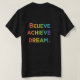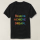 Dieses inspirierend T - Shirt-Design enthält den Begriff "Glaube an einen Traum" in fett gedruckten, mehrfarbigen Buchstaben vor einem dynamischen, abstrakten Hintergrund. Das Design vermittelt eine Botschaft der Hoffnung, der Entschlossenheit und des Powers der Träume, um die Zukunft zu gestalten. Sie ermutigt die Träger, an sich selbst zu glauben, ehrgeizige Ziele zu Set und hart daran zu arbeiten, ihre Ziele zu erreichen.