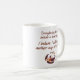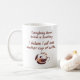 "Jeder sollte an etwas glauben. Ich glaube, ich habe noch eine Tasse Kaffee." Ein lustiges Kaffeekochen-Tasse-Angebot für jeden Kaffeeliebhaber! Eleganter handgeschriebener Stil auf einem stilisierten Bild einer dampfenden Kaffeetasse und Kaffeebohne in lila und braun.