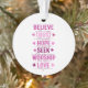 Phrasen: "Glaube wie Maria, vertraue wie Joseph, hoffe wie Hirten, suche nach klugen Männern, bete wie Engel und Liebe wie Jesus" in Druck und Schrift. Die Buchstaben sind in verschiedenen Rosatönen gehalten, und auf jeder Seite befinden sich die Herzen in verschiedenen Rosatönen.