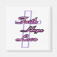 Glaube, Hoffnung und Liebe rosa mit schwarzer Grenze auf einem lila Kreuz. Der Glaube steht im Zentrum der Inspiration.
