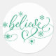 Glaube Script | Einfache Schneeflocke Geblüht Runder Aufkleber