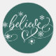 Glaube Script | Grüne Weihnachtsschneeflocken-Wirb Runder Aufkleber