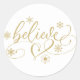 Glaube Script | Sepia Gold Snowflake Geblüht Runder Aufkleber