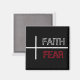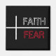 Glaube über Angst Zitat. Roter, Schwarzer und Weißer Text mit Kreuz. Christlicher Magnet.