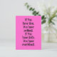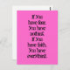 Das ist nur ein Gedanke, der mir in den Sinn kam. "Wenn du Angst hast, hast du nichts. Wenn du Vertrauen hast, hast du alles". Das hier, in schwarzer Schrift auf einer mädchenhaft heißen rosa Postkarte. c) LR