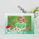 Hübsch Glaube Salbei grüne Kiefer und Kiefernzapfen Weihnachtskarte. Fügen Sie einfach das Foto Ihrer Familie oder Ihres Kindes in den personalisierten Bereich ein.