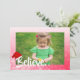 Hübsch Glaube Rot und Kiefer Kegel Weihnachtskarte. Fügen Sie einfach das Foto Ihrer Familie oder Ihres Kindes in den personalisierten Bereich ein.