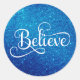 Glauben Sie Kalligrafie Script Royal Blue Imitats Glitzer Classic Round Umschlag Aufklebers Sticker. Bitte beachten Sie, dass es sich um ein grafisches Design/Foto handelt, das auf das zugrunde liegende Produkt übertragen wird und kein wirkliches Leder, Gewebe, Band, Metalle, Ätze, Edelsteine, Glitzer oder Prägung enthält.