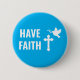 Glaube und glaube an Gott. Design kommt mit einem heiligen Kreuz und einer Taube, die zum Kreuz fliegt, mit einem Zweig von Blätter in seinem Schnabel. Der blaue Hintergrund kann im Anpassungsmodus geändert werden.