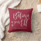 Glauben Sie an Ihren Elf Text auf einem roten Weihnachtskissen ist einfach, aber festlich. Passen Sie den Text an, um einen Namen hinzuzufügen, und dies wird ein großartiges Geschenk für Ihre Freunde oder Familie, die an ihren Elf glauben.