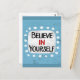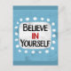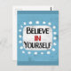 "Glaube an dich selbst" ist ein niedliches inspirierendes oder motivierend Zitat mit einer weißen Akzent-Form, umgeben von weißen, texturierten, whimsikalen Punkten.