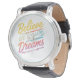 Ein spielerisches und ermutigendes Design, das den Text "Glaube an deine Träume" in einem farbenprächtigen, handgeschriebenen Schriftart präsentiert, der die Energie und den Antrieb darstellt, die man braucht, um seine Ziele zu erreichen.