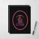 Stilvolles Scrapbook-Blatt mit Kristallen, Schlangen- und Mondphasen auf schwarzem Nachthimmelhintergrund mit "Glaube an die Magie"-Text. Die Vorderseite ist ein großes Bild, die Rückseite ist ein kleineres Bild in der Ecke mit schwarzem Hintergrund.