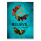Eine inspirational und motivierend Mitteilung, "glauben an selbst", über schönem vibrierendem aquamarinem Hintergrund mit Schmetterlingen und Blumen.