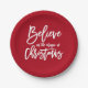 Eine perfekte Wahl für Ihr Weihnachtsfeiertags-Party. Schön, glauben einfacher Feiertagsentwurf mit den Wörtern "an die Magie des Weihnachten", das in einen trendy weiße beschrifteten Schriftart des Skriptes Hand auf einen roten Hintergrund geschrieben wird. Entwerfen Sie durch ELKE CLARKE©, die ausschließlich bei www.zazzle.com/monogramgallery* verfügbar ist.