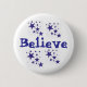 Weißer Knopf mit blauen Sternen und das Wort glauben an Blau.