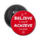 Dieser Flaschenöffner hat weißen Text auf einem hellroten Hintergrund, um Ihnen inspirieren, zu erreichen. "GLAUBEN SIE SICH, ERREICHEN SIE Ihre Ziele."