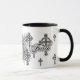 Glauben-und Kreuz-religiöse Tasse. Eleganter Schnörkel in den subtilen Graun und in den Schwarzen wird während dieser christlichen themed Tasse, eines majestätischen Kreuzes in der Mitte und der Wörter "Glaube" auf den Seiten getragen. Verzierte Kreuze ganz um die Tasse.