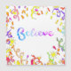 Das Wort "glauben" geschrieben mit kursiven Schriftart. Alle digitalen Bilder mit Aquarelleffekt auf Design angewendet. Geschenkidee für Erwachsene und Kinder.