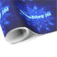 Ein Schwarm blauen Fraktals Schneeflocken. Der isländische Text "Gleðileg jól" (Frohe Weihnachten) erscheint in blau-weiß.