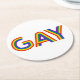 Dieses Kunstwerk enthält das Wort Gay in einem bunten Regenbogen-Schriftart.