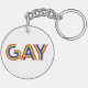 Dieses Kunstwerk enthält das Wort Gay in einem bunten Regenbogen-Schriftart.