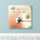 Diese religiöse Leinwand mit 12" x 12"-Motiven zeigt ein nahes Bild eines Wassertropfens auf der Krümmung der Atem eines Babys, das eine Rose aus dem umliegenden Bouquet reflektiert. Die Schrift aus Psalm 46:10 wird hinzugefügt, die lautet: "Sei still und weiß, dass ich Gott bin". Diese Leinwand aus einem additiv-freien Archivierungspapier aus Baumwolle und Polypropylen sorgt für einen langlebigen, verblassten Druck. Wenn Sie Fragen zu dieser Leinwand haben oder mir helfen möchten, dieses Bild auf einen anderen Artikel zu übertragen, können Sie mich über Zazzle kontaktieren. Ich helfe Ihnen gerne, das Bild und die Formulierung korrekt zu gestalten.
