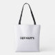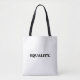 Gleichwertiges weiß und schwarz moderne Typografie minimalistisch Tote Bag. Schwarzer Text auf weißem, schlichtem, robustem Farbhintergrund.