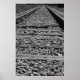 Die Bahn folgt schwarz-weiß mit einem Bauernhof am Ende. Fotografie von Kyla Schnabel von Imaginative Imagery auf Leinwand gedruckt.