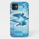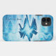 Ein außergewöhnliches, schlichtes, blaues und weißes Fraktal, das auf einen Schmelzwassersee in einem Tal zwischen gletscherbedeckten Bergen hinweist. Fügen Sie Ihren eigenen Text hinzu.