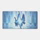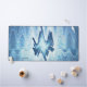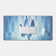Ein außergewöhnliches, einfaches, blaues und weißes Fraktal, das einen Schmelzwassersee in einem Tal zwischen gletscherbedeckten Bergen suggeriert. Passen Sie Ihren eigenen Text an.