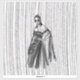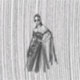 Das ist eine stilvolle Schwarzweiß-Modeabbilderin, die eine gepochte Frau in einem dramatischen, von der Schulter abgehenden Gewand mit aufwändigen Blumenverzierungen und einem fließenden, schieren Kap zeigt. Der Hintergrund weist eine auffallende vertikale Linienstruktur auf, die ein Gefühl von Tiefe und Bewegung vermittelt