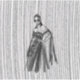 Das ist eine stilvolle Schwarzweiß-Modeabbilderin, die eine gepochte Frau in einem dramatischen, von der Schulter abgehenden Gewand mit aufwändigen Blumenverzierungen und einem fließenden, schieren Kap zeigt. Der Hintergrund weist eine auffallende vertikale Linienstruktur auf, die ein Gefühl von Tiefe und Bewegung vermittelt