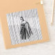 Das ist eine stilvolle Schwarzweiß-Modeabbilderin, die eine gepochte Frau in einem dramatischen, von der Schulter abgehenden Gewand mit aufwändigen Blumenverzierungen und einem fließenden, schieren Kap zeigt. Der Hintergrund weist eine auffallende vertikale Linienstruktur auf, die ein Gefühl von Tiefe und Bewegung vermittelt
