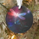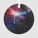 Glassierende, fliegende, rote Libelle mit durchsichtigen, detaillierten Flügeln auf dunklem, nächtlichem, leuchtendem Hintergrund mit tropischen Pflanze und Glühwürmchen. Rote Libelle.