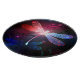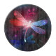 Glassierende, fliegende, rote Libelle mit durchsichtigen, detaillierten Flügeln auf dunklem, nächtlichem, leuchtendem Hintergrund mit tropischen Pflanze und Glühwürmchen. Rote Libelle.