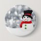 Niedlicher Schneemann glitzert in der Sonne. Roter Scarf, schwarzer Top Hut und grüne Knöpfe.