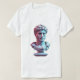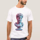 Tauchen Sie mit diesem einzigartigen T - Shirt in ein Retro-futuristisches Ambiente ein. Es ist mit einer glitzernden römischen Büste, die mit pulsierenden Effekten verzerrt ist, umgeben von sanften pastellfarbenen geometrischen Formen und klassischem Retro
