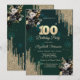 Glitter Drips Black Roses Green 100th Birthday Einladung