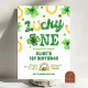 Green Glitter St Patrick First Birthday Invitation, Lucky One 1st Birthday Invite, Editable Shamrock Kids Birthday Party