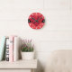 Glitter-Rotherz des Monogramms rotes Runde Wanduhr