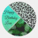 Glitterie Aquamarin Tropical Leopard Print Birthda Runder Aufkleber