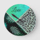 Glitterie Aquamarin tropische Leopardrucke Runde Wanduhr