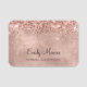Girly Imitate funkelnd Rose Gold Glitzer Highlights auf der Oberseite über eine Imitat metallische Folie. Passen Sie den Stil des Schriftartes (Kalligrafie-Stil für den Namen), die Farbe, die Größe und den Abstand der Buchstaben (im Titel des Jobs) an, um Ihre eigenen personalisierten Namensmarken zu erstellen. Ein modernes Namensschild für Ihr kleines Unternehmen. Die digitale Kunst druckt wie ein Foto auf diesen Namensschildern.