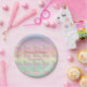 Schöne pastellfarbene Regenbogen-Party-Teller mit glitzernden Regenbogenfarben, die für jeden Anlass individuell oder links.